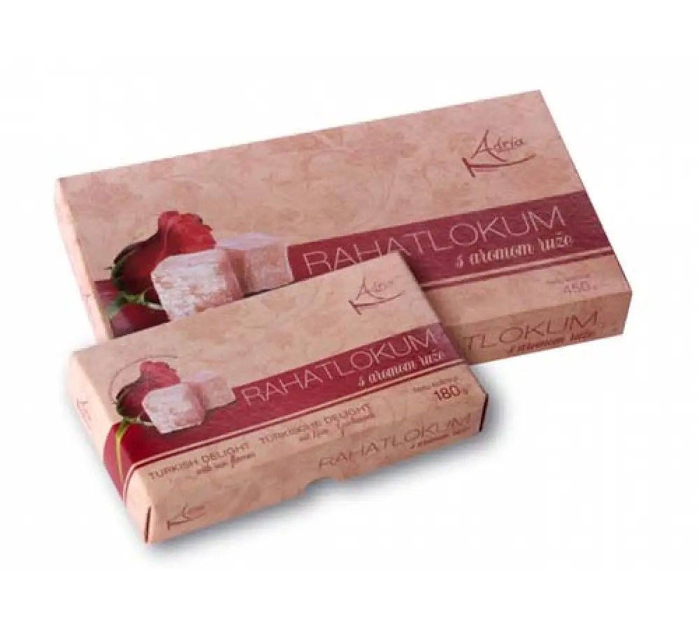 Šećer, kukuruzni škrob, antioksidans: limunska kiselina; aroma: ruža 0,04 %; bojilo: E122.