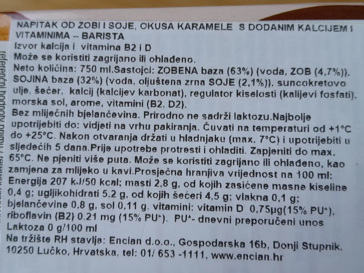 Sojino mlijeko barista karamela 750 ml