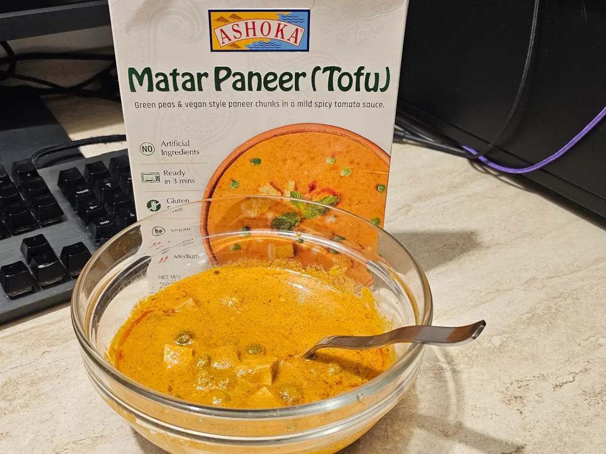 Green peas & vegan style paneer chunks in a mild spicy tomato sauce.
