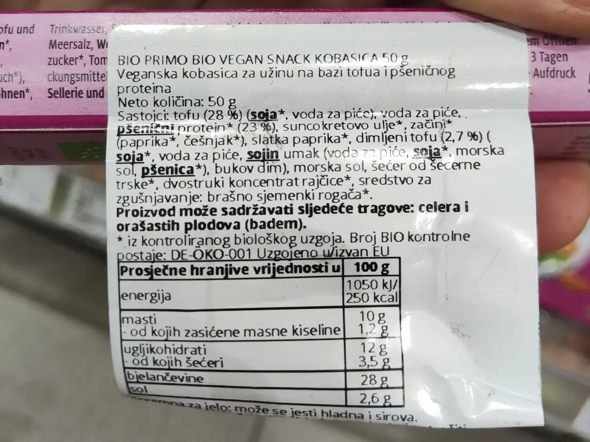 Snack kobasica tofu i pšenica 50 g