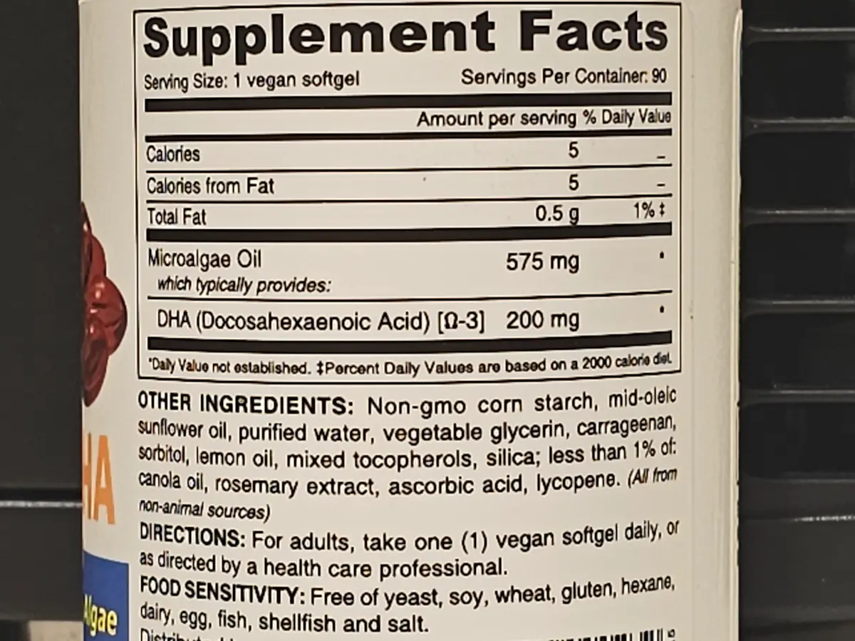 90 Vegan SoftgelsNon-Animal Softgels New Carrageenan-Free Formula! DHA derived from AlgaeTriglyceride FormConsumerLab.com Tested & ApprovedNo animal ingredientsVegan Society Registered