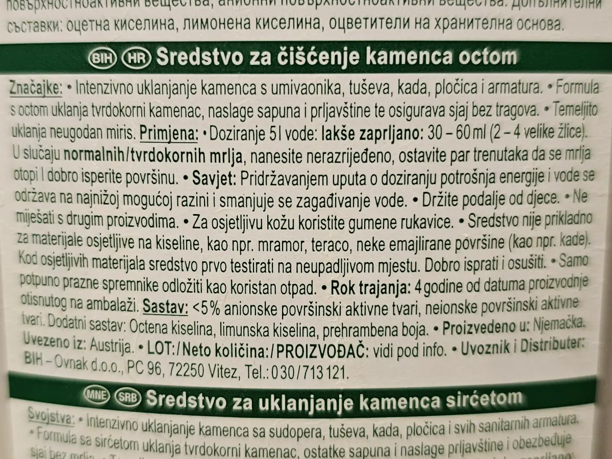 Sredstvo za uklanjanje kamenca s octom 1 L