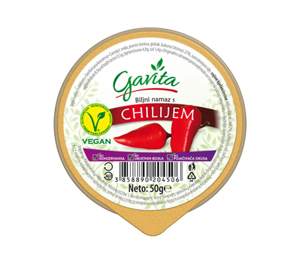 voda, grašak, kukuruz šećerac, mrkva, suncokretovo ulje, sojine bjelančevine, biljna vlakna, chili, kuhinjska sol, začini
