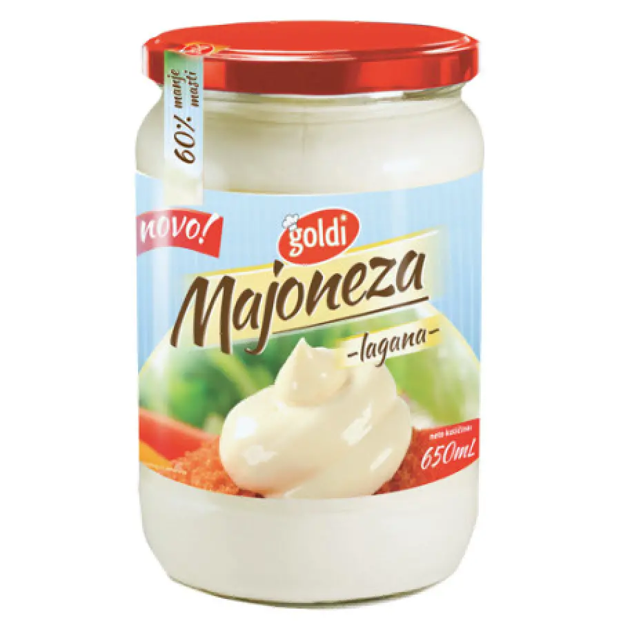Voda, rafinirano suncokretovo ulje (30 %), ocat, kukuruzni škrob, šećer, sol, arome, stabilizatori: E412 i E415, konzervans: E202 max 0.1 %, regulator kiselosti: E330, antioksidans: E385