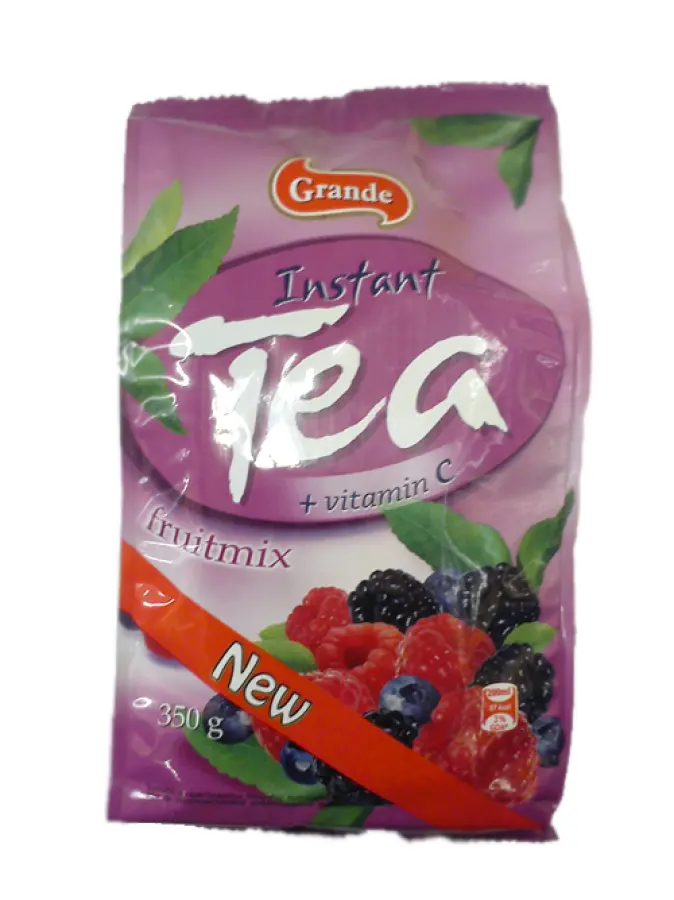 šećer, glukoza, voćni koncentrat više vrsta voća (1,6 %), regulator kiselosti: limunska kiselina, bojila: karamel, cikla, aroma, ekstrakt crnog čaja (0,25 %), vitamin C (min, 100 mg / 100 g suhe tvari)