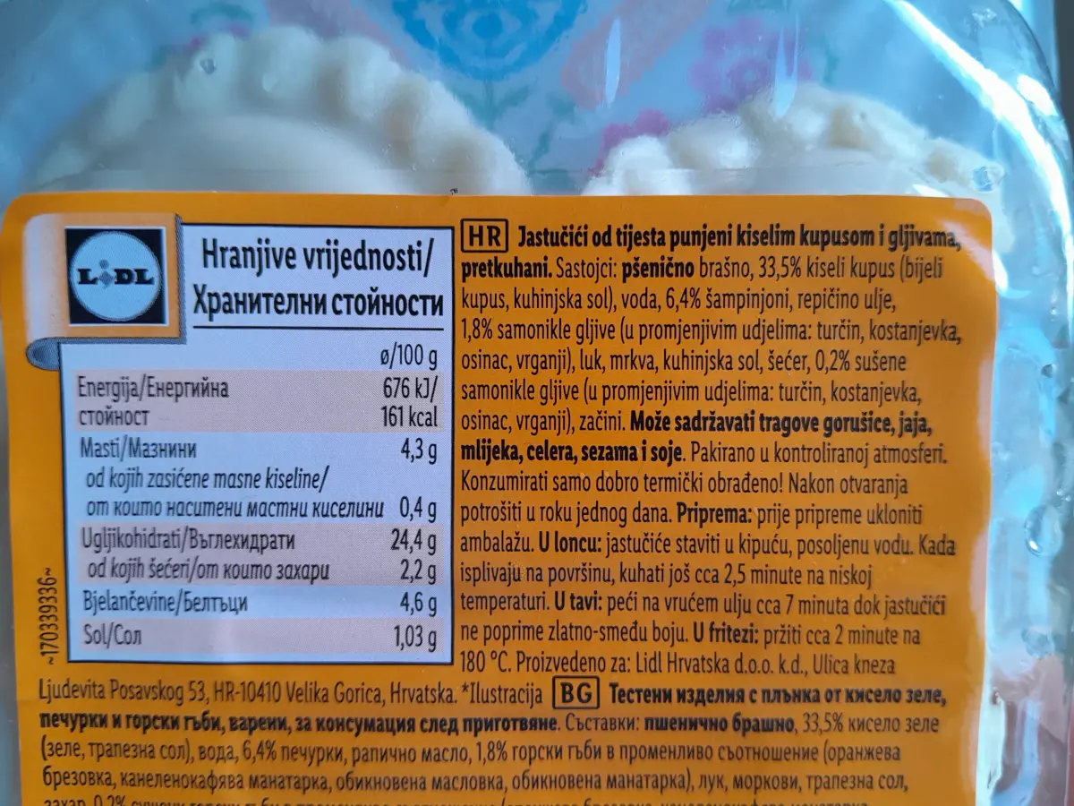Jastučići od tijesta punjeni gljivama i kiselim kupusom 400 g