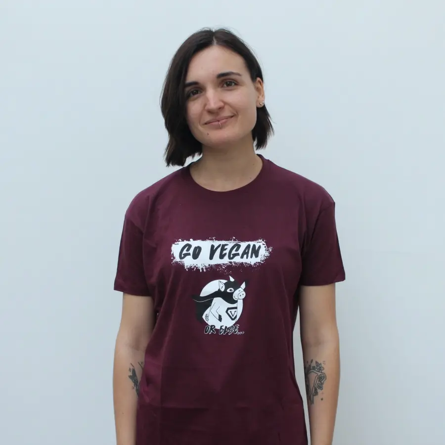 Dvobojni kvalitetni tisak na fino tkanoj pamučnoj majici.Model na slici nosi veličinu M.Color: bordo.