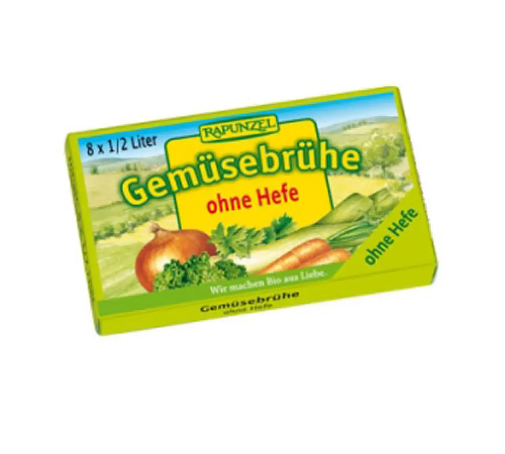 morska sol, palmino ulje nehidrogenirano*, integralno brašno od riže*, povrće* 14,5 % (mrkva*, celer*, luk*, poriluk*, rajčica*), peršin*, muškatni oraščić*, ljupčac list*, kurkuma*, lišće celera*, vlasac*, lovor*. *Organski uzgoj