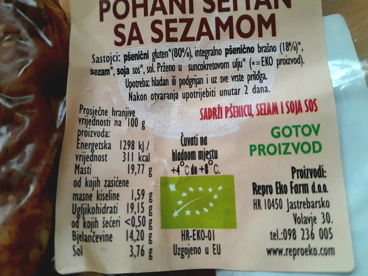 Tablica nutritivnih vrijednosti na 100 g / 100 ml proizvoda:Energija: 1298 kJ / 311 kcalMasti: 19,77 g- od kojih zasićene masne kiseline: 1,59 gUgljikohidrati: 19,15 g- od kojih šećeri: < 0,5 gBjelančevine: 14,2 gSol: 3,76 g