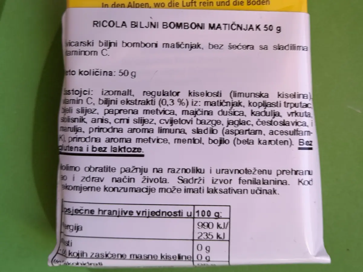 Ricola bomboni okus matičnjaka 50 g