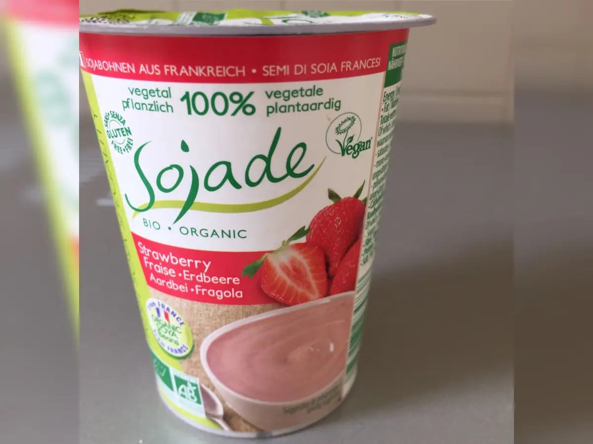 Napitak od soje* (izvorska voda, cjelovito zrno soje* 8 %), pulpa od jagode* 9 %, smeđi šećer od šećerne trske*, sirup od žitarica*, prirodna aroma jagode*, sok od bazge*, zgušnjivač: pektin, karuba guma, kalcijev citrat, regulator kiselosti: limunska kiselina. Izvorne kulture Bifidus i Acidophilus.