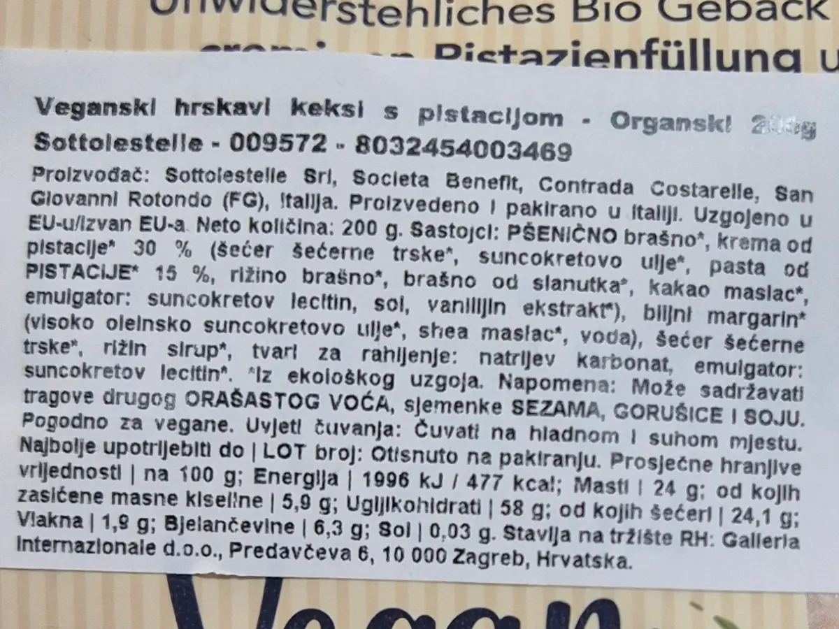 Hrskavi keksi s pistacijom 200 g