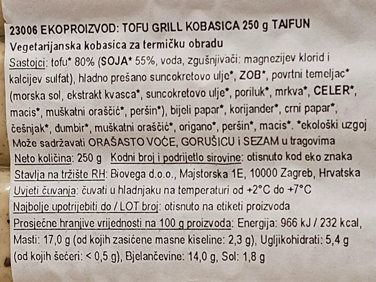Tofu grill kobasica 250 g