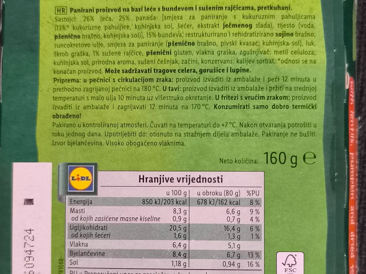 Burger na bazi leće s bundevom i sušenim rajčicama 160 g