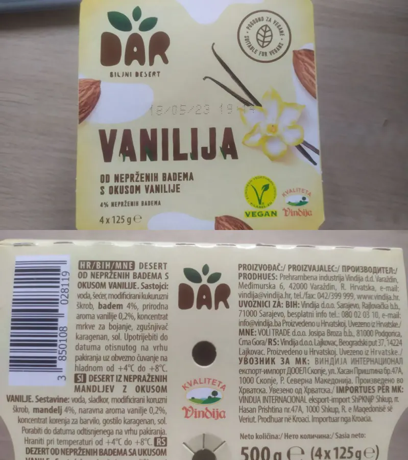 Dar biljni desert vanilija 4 x 125 g