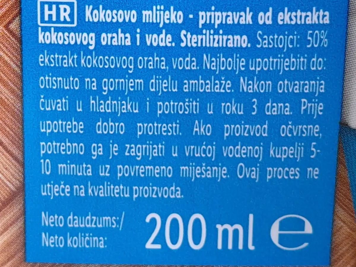 Kokosovo mlijeko za kuhanje 200 ml
