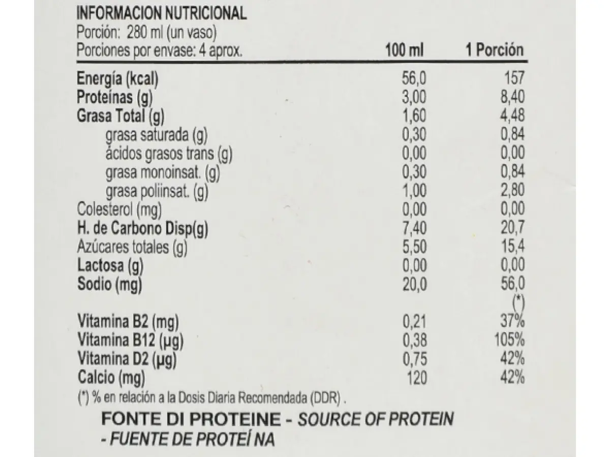 Voda, talijanska soja 5,8%, šećer, kakao smanjene masti 1,3%, kalcijev karbonat, stabilizator: karagenan, regulator kiselosti: kalijevi fosfati, morska sol, aroma, vitamini (B2, B12, D2).