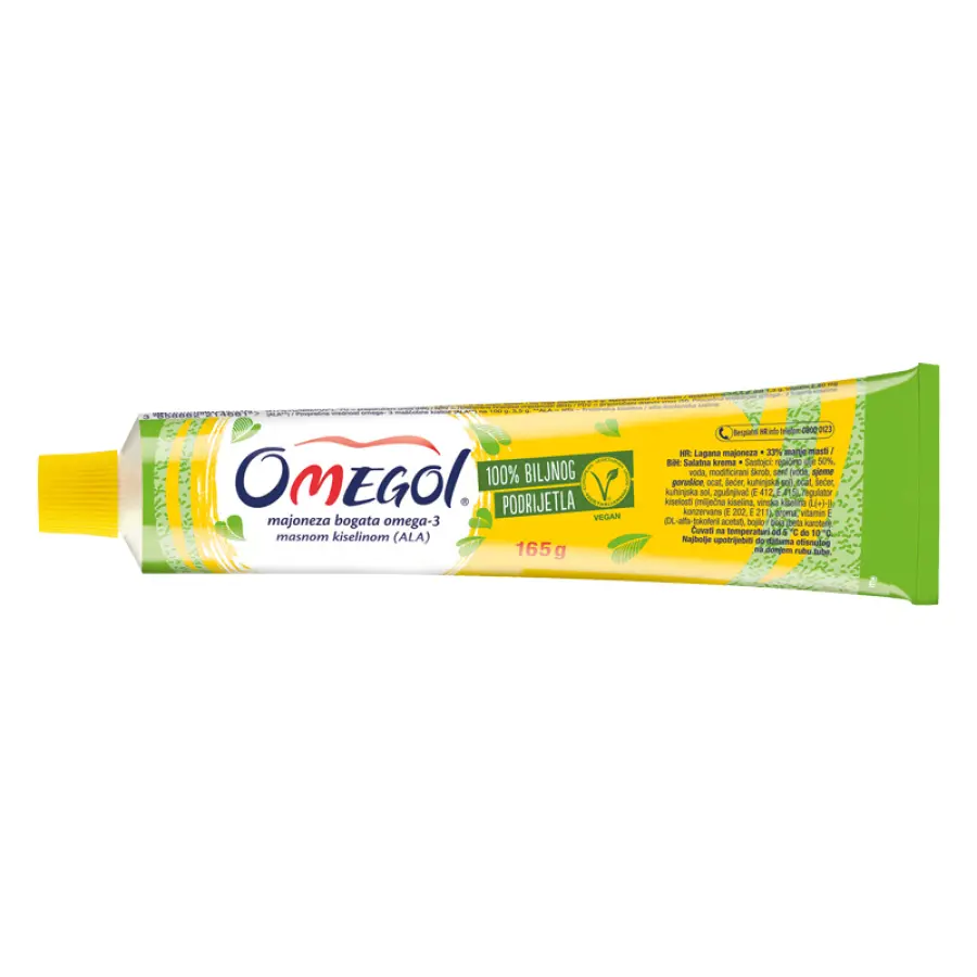 Repičino ulje 50 %, voda, modificirani škrob, senf (voda, sjeme gorušice, ocat, šećer, kuhinjska sol), ocat, šećer, kuhinjska sol, zgušnjivač (E 412, E415), regulator kiselosti (mliječna kiselina, vinska kiselina (L(+)-)), konzervans (E 202, E211), aroma, vitamin E (DL- alfa-tokoferil acetat), bojilo/boja (beta karoten)