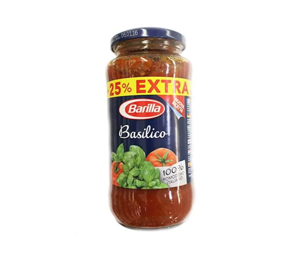 sitno sjeckane rajčice 75,4 %, koncentrat rajčice, mrkva, luk, suncokretovo ulje, bosiljak 1,7 %, šećer, sol, prirodna aroma