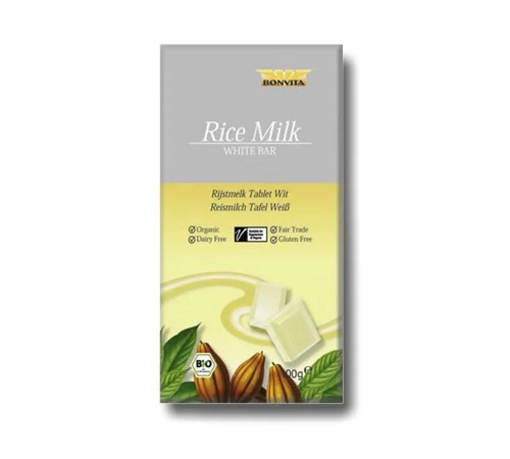 kakao maslac (53 %), sirovi šećer od šećerne trske, rižino mlijeko u prahu (18 %), suncokretov lecitin, vanilija