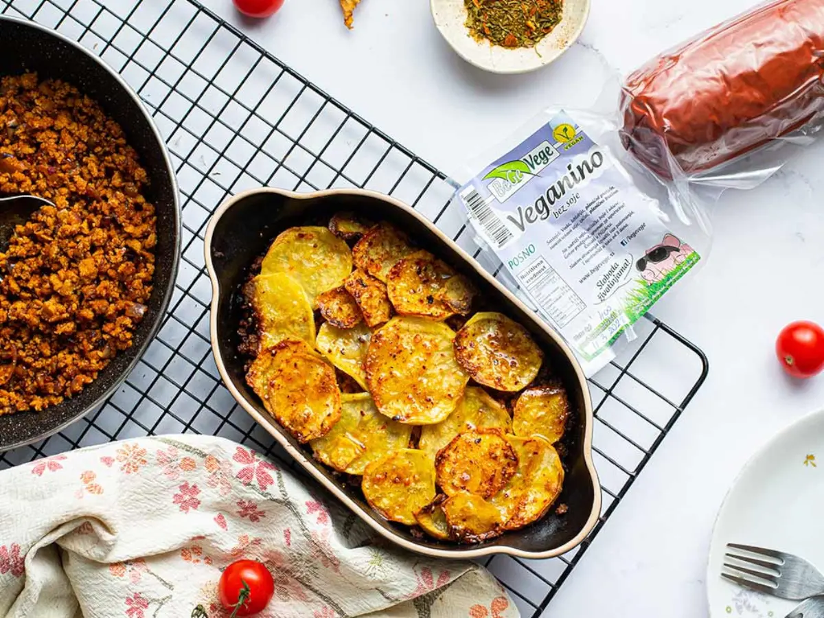 Naš Veganino je veganska, posna kobasica, savršena za ukusne sendviče ili kao dodatak posnim jelima – Probajte posni gulaš, musaku, lazanju ili bilo koje drugo jelo koje inače zahteva mleveno meso ili komade mesa. Naš Vegeanino ima 100% prirodni sadržaj na bazi leblebije, pšeničnog proteina i savršene mešavine začina. Pogledajte ostale proizvode koji su spremni za jelo.