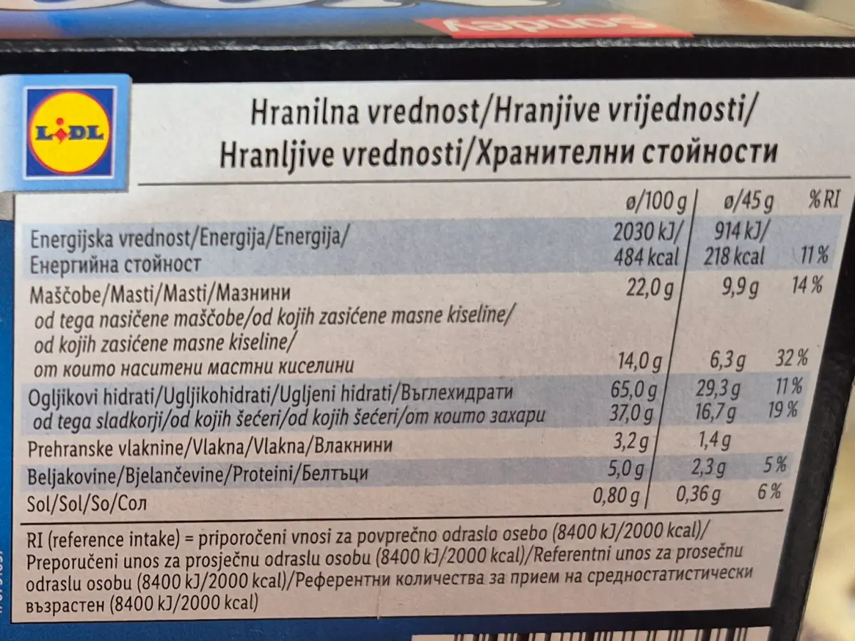 29 % punjenja s okusom vanilije.